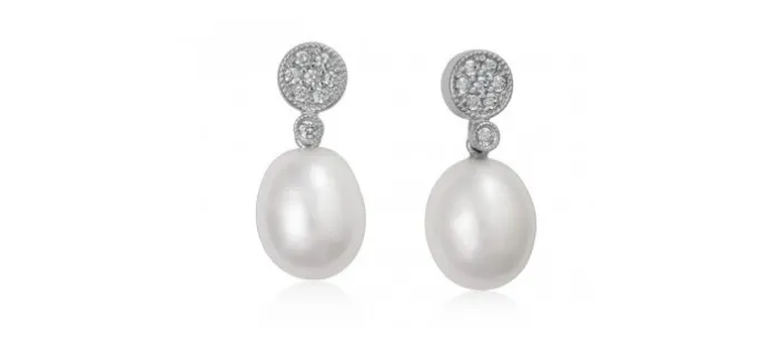 Pendientes de plata de primera ley (925) con baño de rodio, circonitas y perlas cultivadas.