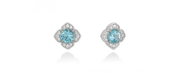 Pendiente de plata de primera ley (925) con baño de rodio con circonita blanca y piedra sintetica color aguamarina.