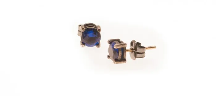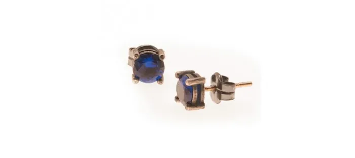 Pendiente de plata envejecida de primera ley (925) con Zirconitas azul cobalto. Perno en oro amarillo de 18 Quilates.
