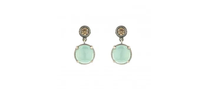 Pendientes de botón con una circonita del que cuelga una piedra semipreciosa como protagonista