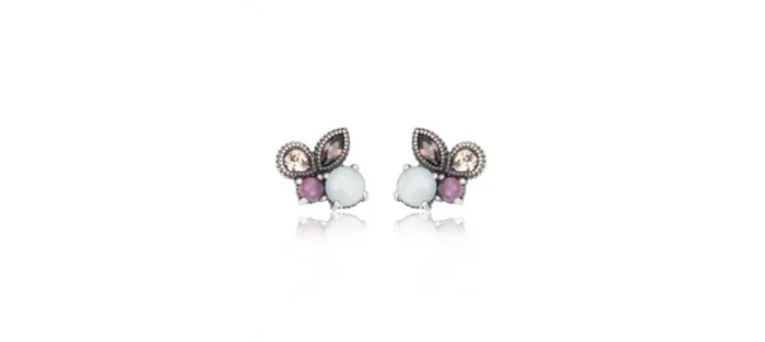 Pendiente de plata de ley 925 con acabado envejecido y lo componen un cabujón facetado de calcedonia, un cabujón liso de cuarzo hidrotermal, una circonita brown talla marquise y una champagne talla lágrima.