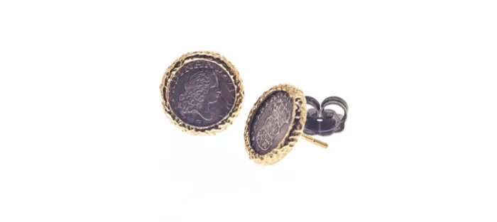 Pendiente de plata envejecida de primera ley (925) y oro amarillo de 18 Quilates. Perno (pincho trasero) también en oro amarillo de 18 Quilates.