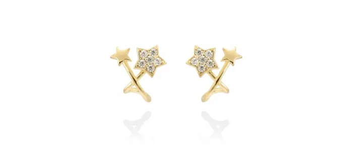Pendientes de plata de primera ley (925) chapada en oro amarillo de 18kt con circonita blanca. (dimensiones de la pieza: 15 x 14 mm.)