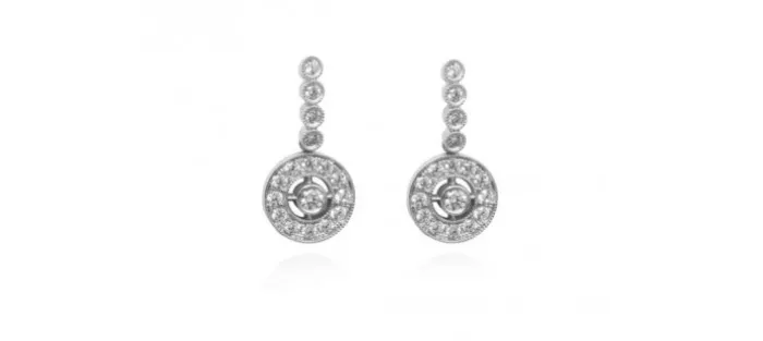 Pendientes de plata de primera ley (925) con baño de rodio y circonita blanca. (largo:2,5 cm.)