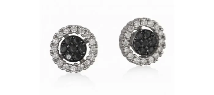 Pendientes de plata de primera ley (925) con baño de color y Zirconitas blancas y negras.