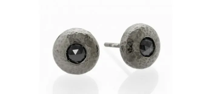 Pendientes de plata con baño de rutenio diamante en talla Rosa.