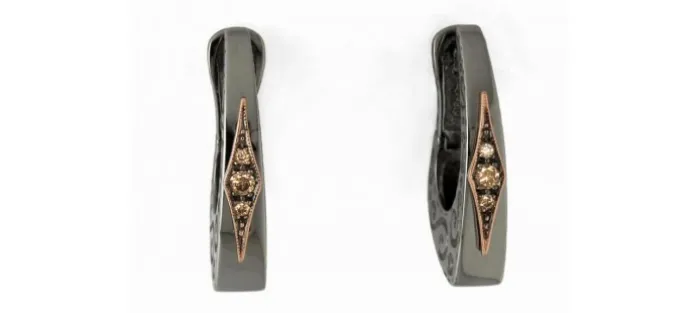Pendientes de plata bañada en rutenio, oro rosa y diamantes coñac.