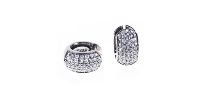 Pendientes tipo criolla de oro blanco de 18 k. Cada pendiente lleva engastados 39 diamantes blancos de 1,5 mm. (Peso total de los diamantes: 1,10 cts).