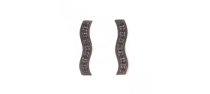 Pendiente sinuoso de plata envejecida de primera ley (925). Perno en oro amarillo de 18 Quilates. Cada pendiente lleva engastado 8 diamantes negros de 1,4 mm (Peso total de los diamantes: 0,28 Quilates).