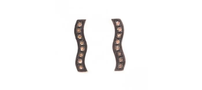 Pendiente sinuoso de plata envejecida de primera ley (925). Perno en oro amarillo de 18 Quilates. Cada pendiente lleva engastado 8 diamantes coñac de 1,4mm (Peso total de los diamantes 0,28 Quilates).