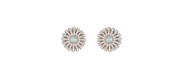 Estos pendientes de botón en plata de ley 925 con un cabujón central liso de calcedonia en 3 mm rodeado de una estela de circonitas talla brillante de 1 mm en tonos cava es una apuesta segura por la sencillez y la elegancia.