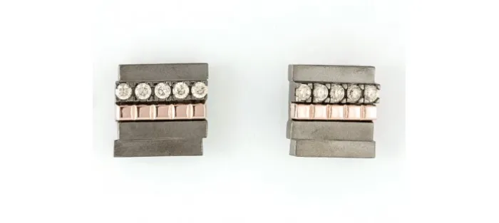 Pendientes de plata de primera ley (925) con baño de rutenio y chapado en oro rosa de 18kt con circonita coñac. (tamaño: 1,2 cm.)