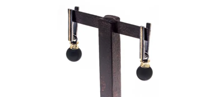 Pendientes desmontables de plata envejecida de primera ley (925), oro amarillo de 18 Kts y Ónix mate.