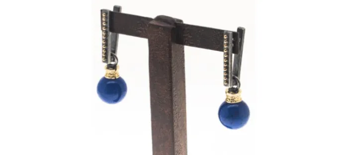 Pendientes desmontables de plata envejecida de primera ley (925), oro amarillo de 18 Kts y Lapislázuli.