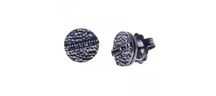 Pendientes de plata envejecida de primera ley (925) y diamantes negros. (Perno en oro amarillo de 18 Quilates). Peso total de los diamantes: 0,24 Quilates.