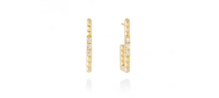 Pendientes de plata de primera ley (925) chapada en oro amarillo de 18kt con circonita blanca. (tamaño: 2,5 cm.)