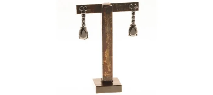 Pendiente desmontable de plata envejecida de primera ley (925) con Zirconitas negra. Perno en oro amarillo de 18 Quilates.