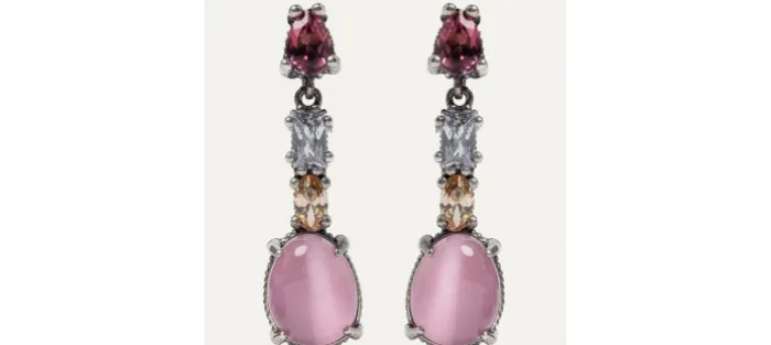 Pendientes de plata de ley 925 con cuarzos y circonitas. Disponible en varios colores.