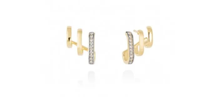 Pendientes de plata de primera ley (925) chapada en oro amarillo de 18kt con circonita blanca. (tamaño: 1,5 x 2 cm.)