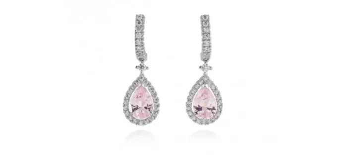 Pendientes de plata de primera ley (925) con baño de rodio con circonita blanca y morganita sintetica.