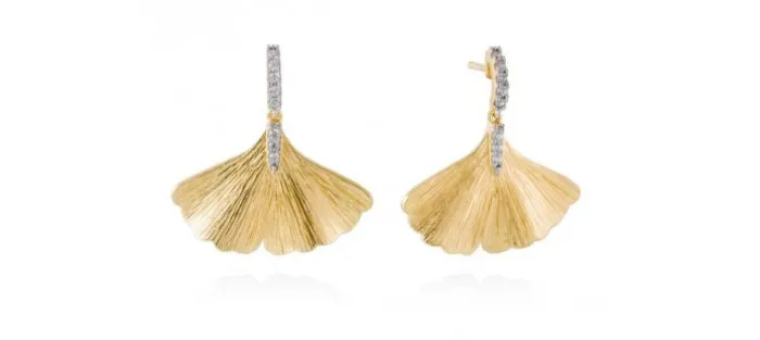 Pendientes de plata de primera ley (925) chapada en oro amarillo de 18kt con circonita blanca. (tamaño: 3 cm.)