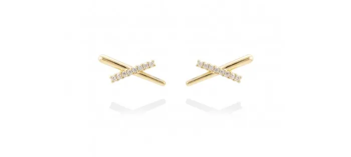 Pendientes de plata de primera ley (925) chapada en oro amarillo de 18kt y circonita blanca. (tamaño: 2 cm.)