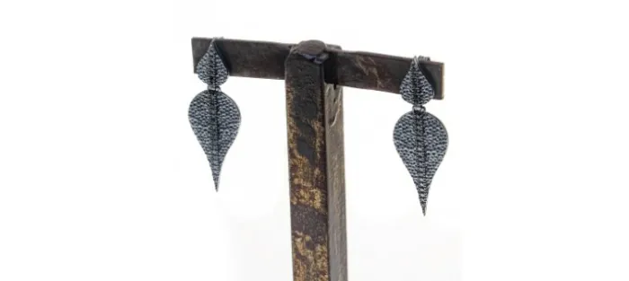 Pendientes de plata envejecida de primera ley (925) y diamantes negros. (Perno en oro amarillo de 18 Quilates). Peso total de los diamantes: 0,87 Quilates).