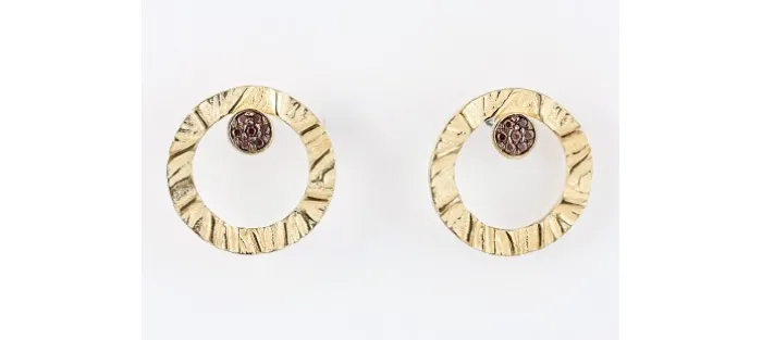 Pendientes de plata de primera ley (925) chapada en oro amarillo de 18kt con circonita marrón. (tamaño: 2 cm.)