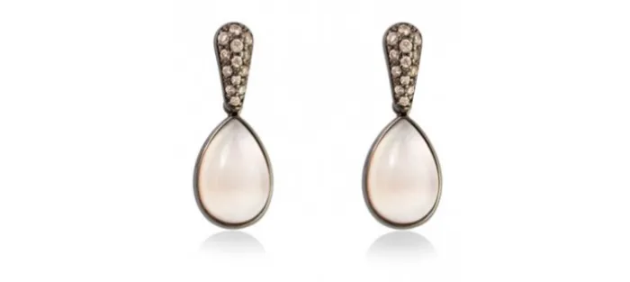 Pendientes de plata de primera ley (925) con baño de rutenio con circonita coñac y doblete de cuarzo milky y nácar rosa.