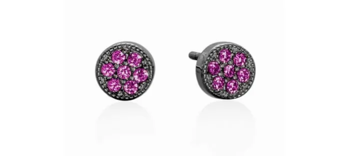 Pendientes de plata de primera ley (925) con baño de rutenio con zafiro fucsia sintético.