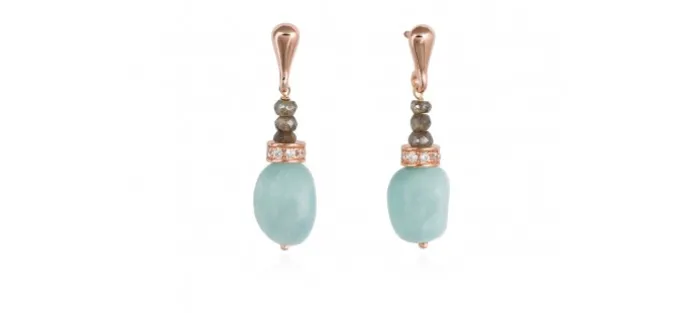 Pendientes de plata de primera ley (925) chapada en oro rosa de 18kt con circonita blanca, labradorita facetada y aguamarina.