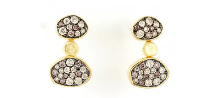 Pendientes de plata de primera ley (925) chapada en oro amarillo de 18kt con circonitas multicolor. (tamaño: 2,3 cm.)
