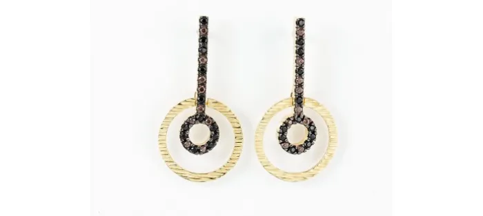 Pendientes de plata de primera ley (925) chapada en oro amarillo de 18kt con circonita coñac y circonita marrón. (tamaño: 3,7 cm.)