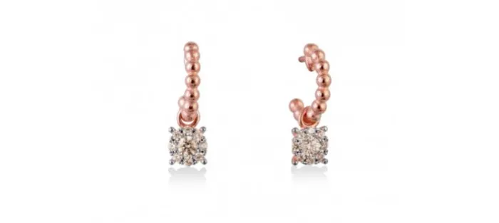 Pendientes de plata de primera ley (925) chapada en oro rosa de 18kt con circonita coñac.