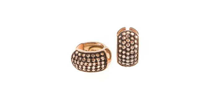 Pendientes tipo criolla de oro rosa de 18 k. Cada pendiente lleva engastados 39 diamantes coñac de 1,5 mm. (Peso total de los diamantes: 1,23 cts).