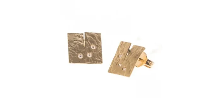 Pendientes cuadrados de oro amarillo mate de 18 Quilates y diamantes. Peso aproximado de los diamantes: 0,05 cts.