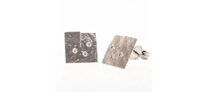 Pendientes cuadrados de oro blanco mate de 18 Quilates y diamantes. Medidas: 10,5 mm x 10,5 mm Peso aproximado de los diamantes: 0,05 cts.