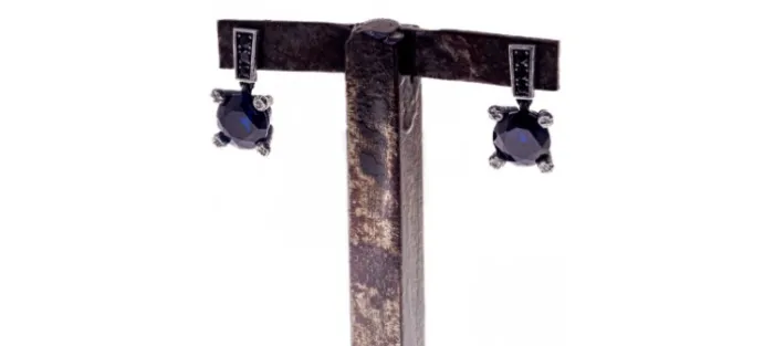 Pendiente en plata envejecida de primera ley (925) Y Zirconitas: Perno (pincho trasero) en oro amarillo de 18 Quilates.
