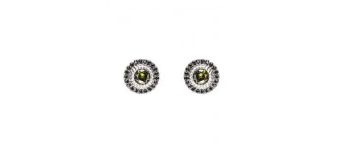 Pendientes botón de plata. Engastado con piedras semipreciosas. Piedra circonita verde, orla brown. Diámetro pendiente 9mm.