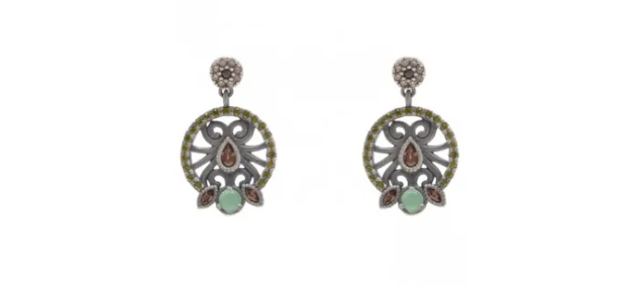 Pendientes de plata envejecida (925), Circonitas y Calcedonia.