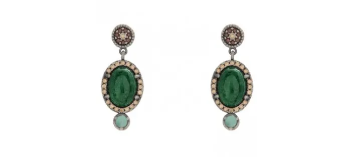 Pendientes de plata envejecida (925), Crisocola, Calcedonia y piedras semipreciosas.