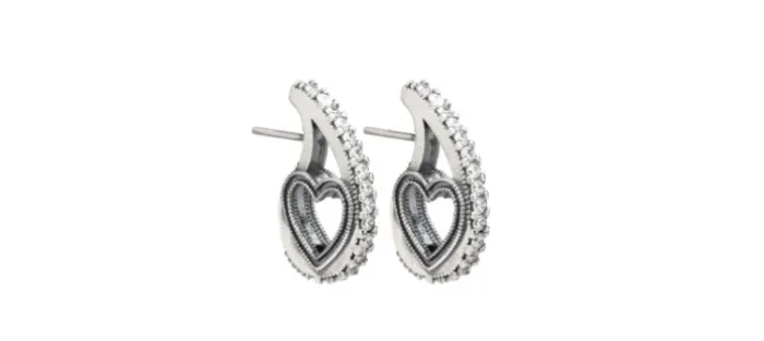 Pendientes criolla en forma de gota con una fila de circonitas blancas y la silueta de un corazón en su interior.