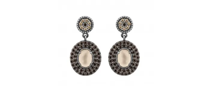 Pendiente de plata envejecida de primera ley (925), Jade rosa y circonitas brown.