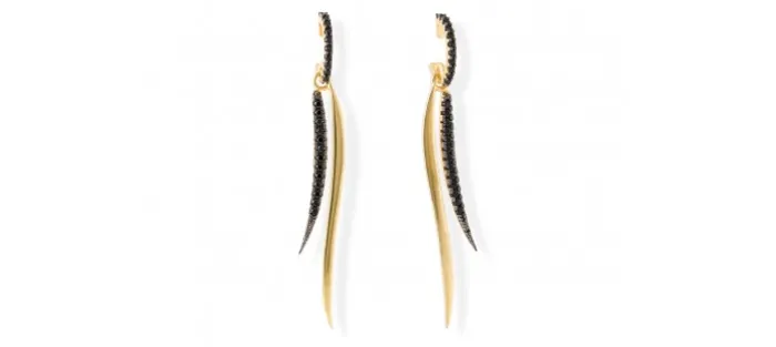 Pendientes de plata de primera ley (925) chapada en oro amarillo de 18kt y espinela negra sintética. (tamaño: 5,8 cm.)