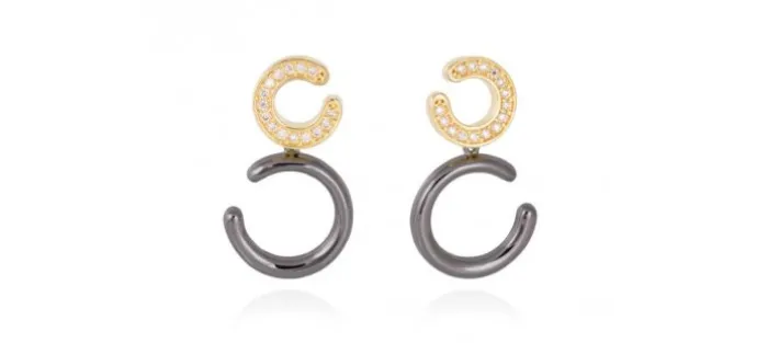 Pendientes de plata de primera ley (925) con baño de rutenio y chapado en oro amarillo de 18kt con circonita coñac. (tamaño: 3 cm.)