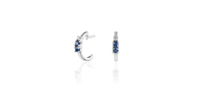 Piedras: diamantes naturales de 1,5 mm Top Wesselton y zafiros naturales de 2,5 mm.