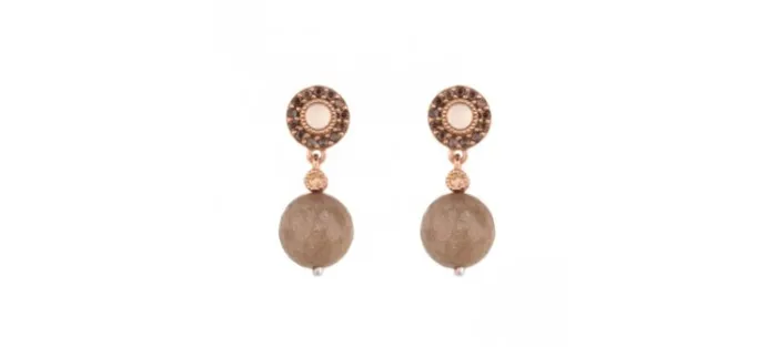 Pendientes de plata de primera ley (925) con baño de oro rosa, cuarzo rosa, agata vison y circonitas.