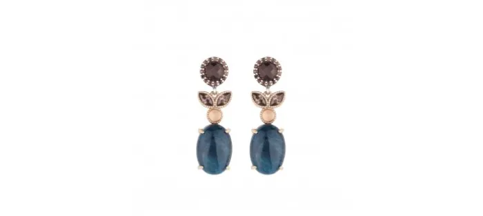 Pendientes de plata de primera ley (925) con baño de oro rosa, Cuarzo rosa, Granate, Apatito y Circonitas.
