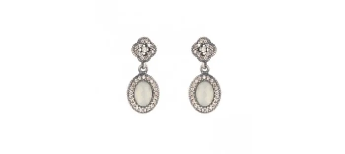 Pendientes de plata envejcida, calcedonia y circonitas.