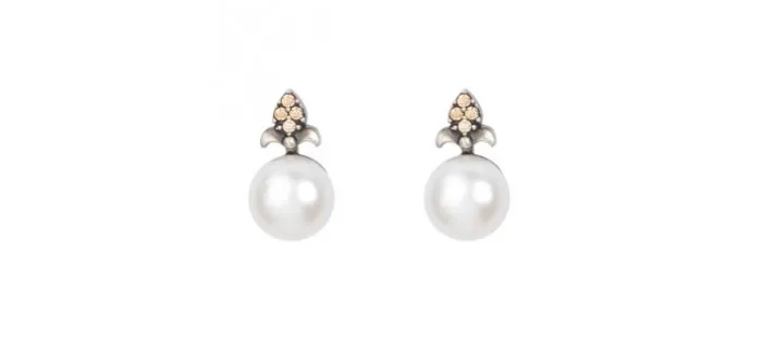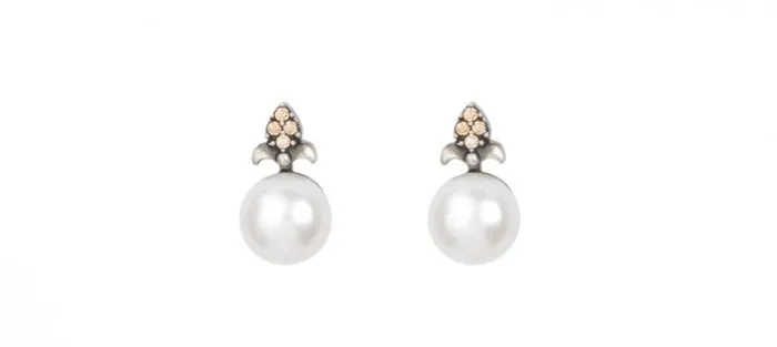Pendiente de plata envejecida de primera ley (925), Zirconitas y perla cultivada.